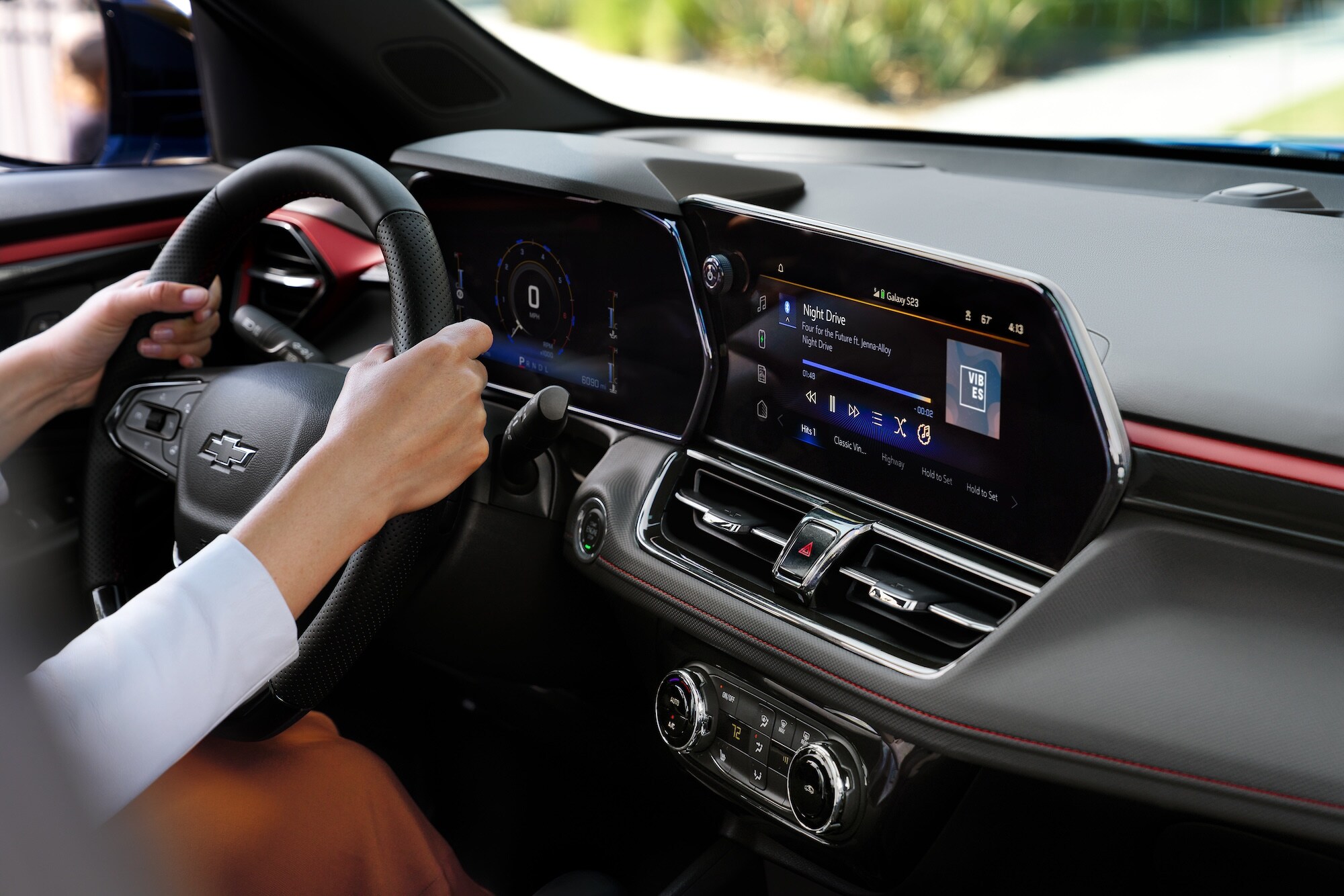 The Trailblazer's comfortable cabin offers upgraded amenities in some trims, like heated front seats to take the edge off cold mornings. Single-zone automatic climate control allows the driver or front passenger to dial in a preferred cabin temperature in select trims. Remote Start lets you warm up or cool down a premium model from a distance before heading out. Higher trims also add a heated and wrapped steering wheel for additional warmth on chilly days.