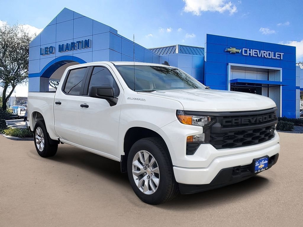 2026 Chevrolet Silverado 1500 Custom Comes well equipped with a long list of standard and optional equipment such as Custom Convenience Package (Electric Rear-Window Defogger, EZ Lift Power Lock and Release Tailgate, LED Cargo Area Lighting, Remote Vehicle Starter System, and Theft Deterrent System (unauthorized Entry)), Custom Value Package, High Capacity Suspension Package, Preferred Equipment Group 1CX (10-Way Power Driver Seat with Lumbar, 120-Volt Bed Mounted Power Outlet, 120-Volt Interior Power Outlet, 3.5 Monochromatic Display Driver Info Center, 40/20/40 Front Split-Bench Seat, Bluetooth® For Phone, Cloth Seat Trim, Color-Keyed Carpeting Floor Covering, Deep-Tinted Glass, Dual Rear USB Ports (charge Only), Electronic Cruise Control, Front Frame-Mounted Black Recovery Hooks, Front Rubberized Vinyl Floor Mats, HD Rear Vision Camera, Manual Tilt Wheel Steering Column, OnStar Services Capable, Power Front Windows with Driver Express Up/Down, Power Front Windows with Passenger Express Down, Power Rear Windows with Express Down, Rear 60/40 Folding Bench Seat (folds Up), Rear Rubberized-Vinyl Floor Mats, Remote Keyless Entry, SiriusXM Trial Subscription, Standard Tailgate, Teen Driver, Tire Pressure Monitoring System, and Wi-Fi Hot Spot Capable), Trailering Package (Hitch Guidance), 8-Speed Automatic, Black Cloth, 3.42 Rear Axle Ratio, 4-Wheel Disc Brakes, 6 Speakers, 6-Speaker Audio System, ABS brakes, Air Conditioning, Alloy wheels, AM/FM radio: SiriusXM, Apple CarPlay/Android Auto, Auto High-beam Headlights, Auto-Locking Rear Differential, Automatic Emergency Braking, Brake assist, Bumpers: body-color, Compass, Delay-off headlights, Driver door bin, Driver vanity mirror, Dual front impact airbags, Dual front side impact airbags, Electronic Stability Control, Emergency communication system: OnStar, Following Distance Indicator, Forward Collision Alert, Front anti-roll bar, Front Black Bowtie Emblem, Front Center Armrest w/Storage, Front License Plate Kit, Front Pedestrian Braking, Front reading lights, Front wheel independent suspension, Fully automatic headlights, Heated door mirrors, Illuminated entry, IntelliBeam Automatic High Beam on/Off, Lane Keep Assist with Lane Departure Warning, Low tire pressure warning, Multi-Flex Tailgate, Occupant sensing airbag, Outside temperature display, Overhead airbag, Overhead console, Panic alarm, Passenger door bin, Passenger vanity mirror, Power door mirrors, Power driver seat, Power steering, Power windows, Premium audio system: Chevrolet Infotainment 3, Radio data system, Radio: Chevrolet Infotainment 3 System, Rear reading lights, Rear step bumper, Rear window defroster, Remote keyless entry, Security system, Speed control, Speed-sensing steering, Split folding rear seat, Tachometer, Tilt steering wheel, Traction control, Trip computer, Variably intermittent wipers, Voltmeter, Wheel Locks (set of 4), and Wheels: 20 x 9 Bright Silver Painted Aluminum. 8-Speed Automatic, Black Cloth.