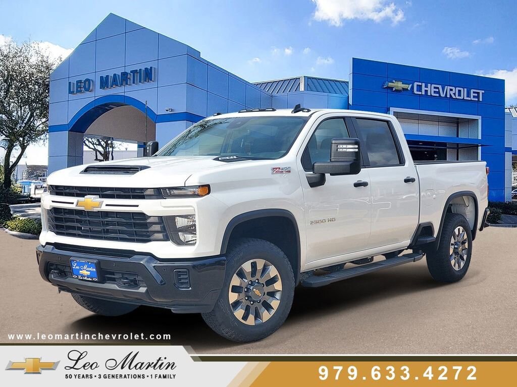 2026 Chevrolet Silverado 2500HD Custom Comes well equipped with a long list of standard and optional equipment such as Custom Convenience Package (10-Way Power Driver Seat Adjuster with Lumbar, 120-Volt Bed Mounted Power Outlet, 120-Volt Interior Power Outlet, Dual Rear USB Ports (charge Only), Electric Rear-Window Defogger, EZ Lift Power Lock and Release Tailgate, LED Cargo Area Lighting, Remote Vehicle Starter System, and Unauthorized Entry Theft-Deterrent System), Custom Value Package (Auto-Dimming Inside Rear-View Mirror and Heated and Auto-Dimming Vertical Trailering Mirrors), CX Safety Package (Lane Change Alert with Side Blind Zone Alert, Rear Cross Traffic Alert, and Ultrasonic Front and Rear Park Assist), Preferred Equipment Group 1CX (170 Amp Alternator, 2-Speed Electronic Shift Transfer Case, 3.5 Diagonal Monochromatic Display DIC, 3.73 Rear Axle Ratio, Black Mirror Caps, Bluetooth® For Phone, Chevrolet Connected Access Capable, Color-Keyed Carpeting Floor Covering, Compass, Deep-Tinted Glass, Durabed Pickup Bed, Electronic Cruise Control with Set and Resume Speed, Front Rubberized Vinyl Floor Mats, HD Rear Vision Camera, Heated Vertical Trailering Mirrors, Locking Tailgate, Manual Tailgate Function with No EZ Lift, Manual Tilt-Wheel Steering Column, OnStar Services Capable, Power Door Locks, Power Front Windows with Driver Express Up/Down, Power Front Windows with Passenger Express Down, Power Rear Windows with Express Down, Push Button Start, Rear 60/40 Folding Bench Seat (folds Up), Rear Rubberized Vinyl Floor Mats, Remote Keyless Entry, SiriusXM with 360L Trial Subscription, Standard Tailgate, Wheels: 20 10-Spoke Machined Aluminum, Wi-Fi Hotspot Capable, and Wireless Phone Projection), Suspension Package, Z71 Off-Road Package (Hill Descent Control), 10-Speed Automatic, 4WD, Black Cloth, 4-Wheel Disc Brakes, 5th Wheel and Gooseneck Trailer Wiring Provisions, 6 Speakers, 6-Speaker Audio System, 6 Rectangular Black Tubular Assist Steps, 720 Cold-Cranking Amps Heavy-Duty Battery, ABS brakes, Adaptive Cruise Control, Air Conditioning, Alloy wheels, AM/FM radio: SiriusXM with 360L, Apple CarPlay/Android Auto, Auto High-beam Headlights, Bed View Camera, Brake assist, Cloth Seat Trim, Delay-off headlights, Driver door bin, Dual front impact airbags, Dual front side impact airbags, Electronic Stability Control, Emergency communication system: OnStar, Front 40/20/40 Split-Bench Seats with Lockable Storage, Front anti-roll bar, Front Center Armrest w/Storage, Front License Plate Kit, Front reading lights, Front wheel independent suspension, Fully automatic headlights, Heated door mirrors, Illuminated entry, Inside Rear-View Auto-Dimming Mirror, LED Smoked Amber Roof Marker Lamps, Low tire pressure warning, Occupant sensing airbag, Outside temperature display, Overhead airbag, Overhead console, Panic alarm, Passenger door bin, Passenger vanity mirror, Power door mirrors, Power steering, Power windows, Premium audio system: Chevrolet Infotainment 3, Radio: Chevrolet Infotainment 3 System, Rear reading lights, Rear step bumper, Remote keyless entry, Speed control, Split folding rear seat, Tachometer, Tilt steering wheel, Traction control, Trip computer, Turn signal indicator mirrors, Variably intermittent wipers, and Voltmeter. 10-Speed Automatic, 4WD, Black Cloth.