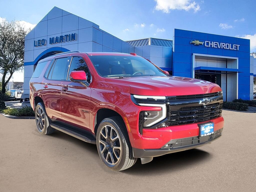 2026 Chevrolet Tahoe RST Comes well equipped with a long list of standard and optional equipment such as Comfort Package (2nd Row Power Release 60/40 Split-Folding Bench Seat, 3rd Row 60/40 Power-Folding Split-Bench Seat, Bose 10-Speaker Centerpoint Surround Audio System Feature, Heated 2nd Row Outboard Seats, Heated Steering Wheel, LED Headlamps with LED Daytime Running Lamps, LED Tail Lamps, Memory Settings, and Outside Heated Power-Adjustable Mirrors), License Plate Front Mounting Package, Preferred Equipment Group 1SP (1st and 2nd Row Color-Keyed Carpeted Floor Mats, 3-Spoke Wrapped Steering Wheel, 3rd Row Manual 60/40 Split-Folding Bench Seats, Auto-Dimming Inside Rear-View Mirror, Bright Front and Rear Door Sill Plates, Color-Keyed Carpeting Floor Covering, Dual Exhaust System, Floor Console with Storage Area, Front Bucket Seats, Front LED Fog Lamps, Frontal Driver and Outboard Passenger Airbags, Interior Camera, Key Card, Memory Settings For Driver, Rear Power Liftgate, Remote Start, RST Exterior Features, Set of 4 Wheel Locks, SiriusXM with 360L Trial Subscription, Universal Home Remote, USB Ports, Wheels: 22 x 9 Bright Machined, and Wireless Phone Charging), Premium Liner Protection Package (3rd Row All-Weather Floor Liners, All-Weather Cargo Mat, and First and Second Rows Premium Floor Liners), Red Leather, 2-Way Power Driver Lumbar Seat Adjuster, 2-Way Power Front Passenger Lumbar Seat Adjuster, 3.23 Rear Axle Ratio, 3rd row seats: split-bench, 4-Wheel Disc Brakes, 6 Speakers, 6-Speaker Audio System Feature, 8-Way Power Driver Seat Adjuster, 8-Way Power Front Passenger Seat Adjuster, ABS brakes, Air Conditioning, Alloy wheels, AM/FM radio: SiriusXM with 360L, Apple CarPlay/Android Auto, Auto High-beam Headlights, Auto-dimming Rear-View mirror, Automatic temperature control, Brake assist, Bumpers: body-color, Compass, Delay-off headlights, Driver door bin, Driver vanity mirror, Dual front impact airbags, Dual front side impact airbags, Dual-Pane Power Panoramic Sunroof, Electronic Stability Control, Emergency communication system: OnStar and Chevrolet connected services capable, Exterior Parking Camera Rear, Four wheel independent suspension, Front anti-roll bar, Front Center Armrest, Front dual zone A/C, Front fog lights, Front reading lights, Fully automatic headlights, Garage door transmitter, Heated door mirrors, Heated Driver and Front Passenger Seats, Heated front seats, Illuminated entry, Low tire pressure warning, Memory seat, Navigation system: Google built-in compatibility (select service plan required, terms and limitations apply), Occupant sensing airbag, Outside temperature display, Overhead airbag, Overhead console, Panic alarm, Passenger door bin, Passenger vanity mirror, Perforated Leather Seat Trim, Power door mirrors, Power driver seat, Power Liftgate, Power passenger seat, Power Release 2nd Row Bucket Seats, Power steering, Power windows, Premium audio system: Chevrolet Infotainment 3 Premium, Premium Smooth Ride Suspension, Radio data system, Radio: 17.7 Diagonal Advanced Color LCD Display, Rain sensing wipers, Rear air conditioning, Rear anti-roll bar, Rear reading lights, Rear seat center armrest, Rear window defroster, Rear window wiper, Remote keyless entry, Security system, Speed control, Speed-sensing steering, Split folding rear seat, Spoiler, Steering wheel mounted audio controls, Tachometer, Telescoping steering wheel, Tilt steering wheel, Traction control, Trip computer, Variably intermittent wipers, and Voltmeter. Red Leather.