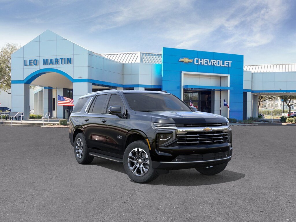 2026 Chevrolet Tahoe LT Comes well equipped with a long list of standard and optional equipment such as All-Weather Liner Protection Package (LPO) (1st & 2nd Rows All-Weather Floor Liners (LPO), 3rd Row All-Weather Floor Liners (LPO), and All-Weather Cargo Mat (LPO)), Comfort Package (2nd Row Pwr Release 60/40 Split-Folding Bench Seat, 3rd Row 60/40 Power-Folding Split-Bench Seat, Bose 10-Speaker Centerpoint Surround Audio Sys Ft, Heated 2nd Row Outboard Seats, Heated Steering Wheel, LED Headlamps w/LED Daytime Running Lamps, LED Tail Lamps, Memory Settings, and Outside Heated Power-Adjustable Mirrors), License Plate Front Mounting Package, Luxury Package (Auto-Dimming Inside Rear-View Mirror, Front LED Fog Lamps, and Universal Home Remote), Preferred Equipment Group 1LT (1st & 2nd Row Color-Keyed Carpeted Floor Mats, 3-Spoke Wrapped Steering Wheel, 3rd Row Manual 60/40 Split-Folding Bench Seats, Color-Keyed Carpeting Floor Covering, Floor Console w/Storage Area, Frontal Driver & Outboard Passenger Airbags, Interior Camera, Key Card, Memory Settings for Driver, Rear Power Liftgate, Remote Start, SiriusXM w/360L Trial Subscription, USB Ports, and Wireless Phone Charging), Texas Edition (Texas Edition Badging), Black Leather, 2-Way Power Driver Lumbar Seat Adjuster, 2-Way Power Front Passenger Lumbar Seat Adjuster, 3.23 Rear Axle Ratio, 3rd row seats: split-bench, 4-Wheel Disc Brakes, 6 Speakers, 6-Speaker Audio System Feature, 8-Way Power Driver Seat Adjuster, 8-Way Power Front Passenger Seat Adjuster, ABS brakes, Air Conditioning, Alloy wheels, AM/FM radio: SiriusXM with 360L, Apple CarPlay/Android Auto, Auto High-beam Headlights, Automatic temperature control, Brake assist, Bumpers: body-color, Compass, Delay-off headlights, Driver door bin, Driver vanity mirror, Dual front impact airbags, Dual front side impact airbags, Electronic Stability Control, Emergency communication system: OnStar and Chevrolet connected services capable, Exterior Parking Camera Rear, Four wheel independent suspension, Front anti-roll bar, Front Bucket Seats, Front Center Armrest, Front dual zone A/C, Front reading lights, Fully automatic headlights, Heated door mirrors, Heated Driver & Front Passenger Seats, Heated front seats, Illuminated entry, Leather-Appointed Seat Trim, Low tire pressure warning, Memory seat, Navigation system: Google built-in compatibility (select service plan required, terms and limitations apply), Occupant sensing airbag, Outside temperature display, Overhead airbag, Overhead console, Panic alarm, Passenger door bin, Passenger vanity mirror, Power door mirrors, Power driver seat, Power Liftgate, Power passenger seat, Power Release 2nd Row Bucket Seats, Power steering, Power windows, Premium audio system: Chevrolet Infotainment 3 Premium, Premium Smooth Ride Suspension, Radio data system, Radio: 17.7 Diagonal Advanced Color LCD Display, Rain sensing wipers, Rear air conditioning, Rear anti-roll bar, Rear reading lights, Rear seat center armrest, Rear window defroster, Rear window wiper, Remote keyless entry, Security system, Speed control, Speed-sensing steering, Split folding rear seat, Spoiler, Steering wheel mounted audio controls, Tachometer, Telescoping steering wheel, Tilt steering wheel, Traction control, Trip computer, Variably intermittent wipers, Voltmeter, Wheels: 18 x 8.5 Bright Silver Painted Aluminum, and Wheels: 20 x 9 Machined Aluminum. Black Leather.