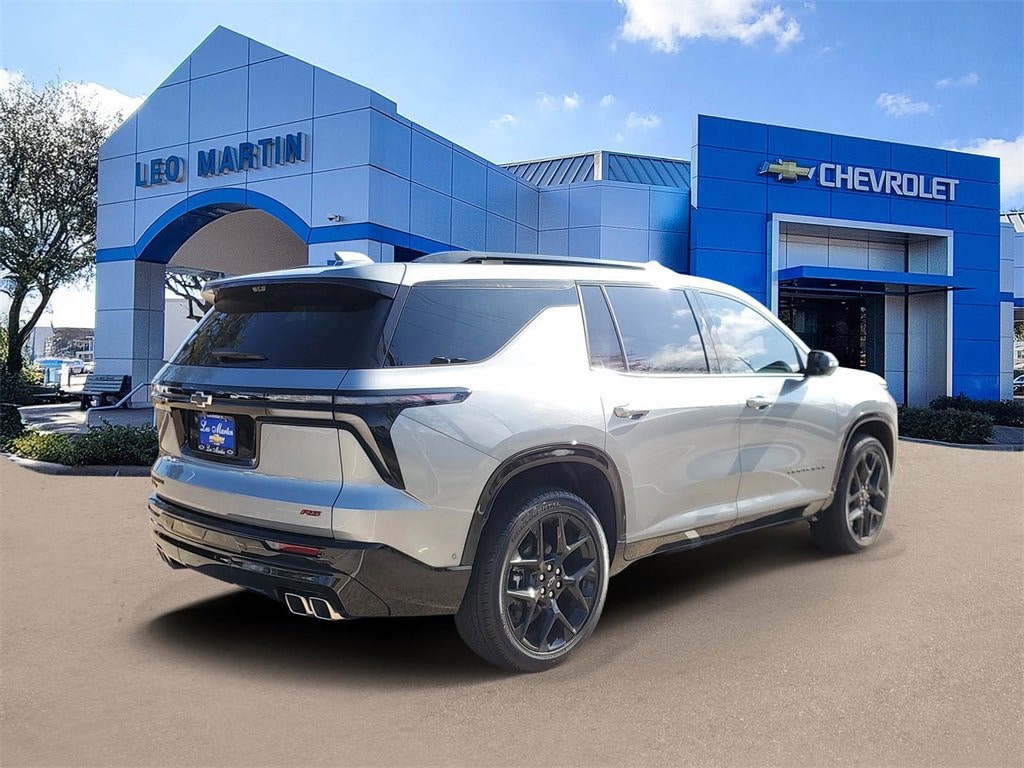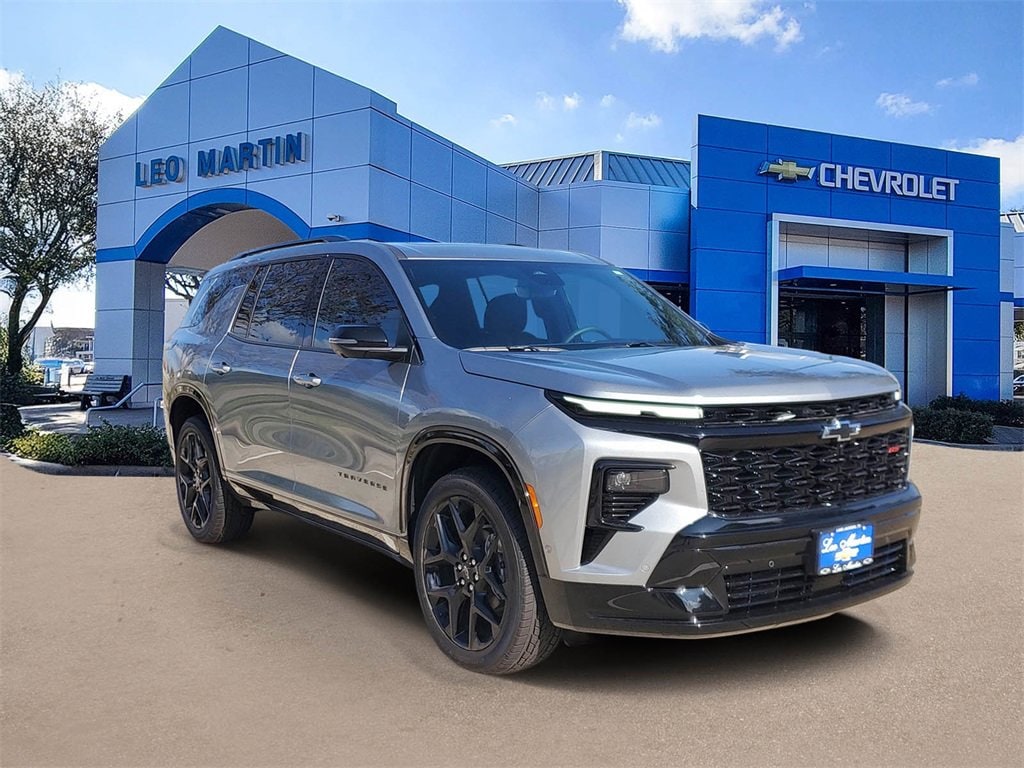 2026 Chevrolet Traverse RS Comes well equipped with a long list of standard and optional equipment such as Floor Liner Package (1st and 2nd Row All-Weather Floor Liners, 3rd Row All-Weather Floor Liner, and Integrated Cargo Liner), Preferred Equipment Group 1RS, 12 Speakers, 3rd row seats: split-bench, 4-Wheel Disc Brakes, 6-Way Power Front Passenger Seat Adjuster, 8-Way Power Driver Seat Adjuster, ABS brakes, Air Conditioning, Alloy wheels, AM/FM radio: SiriusXM with 360L, Apple CarPlay/Android Auto, Auto High-beam Headlights, Auto tilt-away steering wheel, Auto-dimming door mirrors, Automatic temperature control, Bose Premium 12-Speaker Audio System Feature, Brake assist, Bumpers: body-color, Child-Seat-Sensing Airbag, Compass, Delay-off headlights, Driver 4-Way Power Lumbar Seat Adjuster, Driver door bin, Driver vanity mirror, Dual front impact airbags, Dual front side impact airbags, Electronic Stability Control, Emergency communication system: OnStar, Exterior Parking Camera Rear, Four wheel independent suspension, Front anti-roll bar, Front Bucket Seats, Front Center Armrest, Front dual zone A/C, Front Passenger 4-Way Power Lumbar Seat Adjuster, Front reading lights, Fully automatic headlights, Garage door transmitter, Heated door mirrors, Heated Driver and Front Passenger Seats, Heated front seats, Heated rear seats, Heated steering wheel, Illuminated entry, Low tire pressure warning, Memory seat, Navigation System, Occupant sensing airbag, Outside temperature display, Overhead airbag, Overhead console, Panic alarm, Passenger door bin, Passenger vanity mirror, Perforated Leather-Appointed Seat Trim, Power door mirrors, Power driver seat, Power Dual Glass Panoramic Sliding Sunroof, Power Liftgate, Power passenger seat, Power steering, Power windows, Radio data system, Radio: : Audio System w/17.7 Diagonal Display, Rain sensing wipers, Rear air conditioning, Rear anti-roll bar, Rear reading lights, Rear window defroster, Rear window wiper, Remote keyless entry, Security system, SiriusXM with 360L Trial Subscription, Speed control, Speed-sensing steering, Spoiler, Sport steering wheel, Steering wheel memory, Steering wheel mounted audio controls, Tachometer, Telescoping steering wheel, Tilt steering wheel, Traction control, Trip computer, Turn signal indicator mirrors, Variably intermittent wipers, Ventilated Driver and Front Passenger Seats, Ventilated front seats, Voltmeter, and Wheels: 22 High Gloss Black Painted Aluminum.