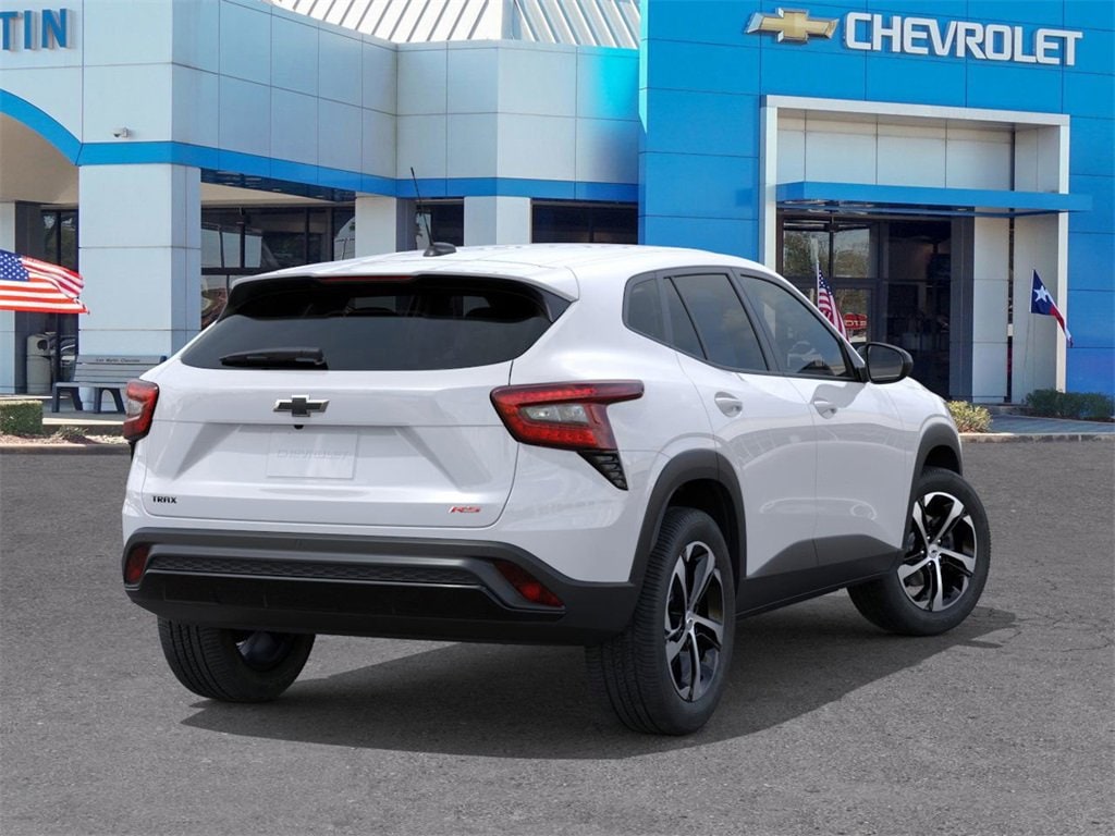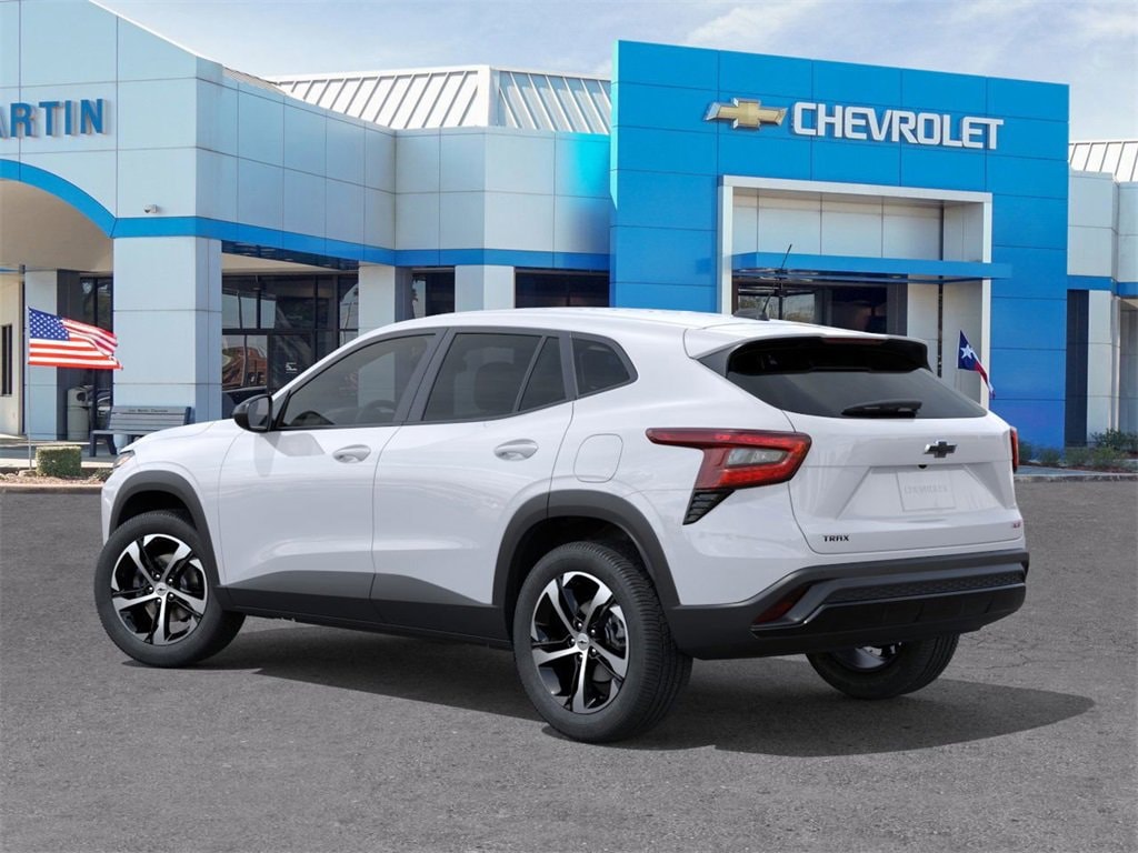 2026 Chevrolet Trax 1RS Comes well equipped with a long list of standard and optional equipment such as Driver Confidence Package (Lane Change Alert with Side Blind Zone Alert, Rear Cross Traffic Alert, and Rear Park Assist), Interior Protection Package (Front and Rear Jet Black All-Weather Floor Liners and Jet Black Cargo Liner), 2-Way Adjustable Front Head Restraints, 3.50 Final Drive Axle Ratio, 4 Speakers, 4-Speaker Audio System Feature, 4-Way Manual Front Passenger Seat Adjuster, 4-Wheel Disc Brakes, 6-Way Manual Driver Seat Adjuster, ABS brakes, Air Conditioning, Alloy wheels, AM/FM radio: SiriusXM, Auto High-beam Headlights, Brake assist, Bumpers: body-color, Cloth Seat Trim, Compass, Delay-off headlights, Driver door bin, Driver vanity mirror, Dual front impact airbags, Dual front side impact airbags, Electronic Stability Control, Emergency communication system: OnStar One Essentials, Exterior Parking Camera Rear, Front anti-roll bar, Front Bucket Seats, Front Center Armrest, Front reading lights, Front wheel independent suspension, Fully automatic headlights, Heated door mirrors, Heated Driver and Front Passenger Seats, Heated front seats, Heated steering wheel, Illuminated entry, Leather steering wheel, Low tire pressure warning, Occupant sensing airbag, Outside temperature display, Overhead airbag, Overhead console, Panic alarm, Passenger door bin, Passenger vanity mirror, Power door mirrors, Power steering, Power windows, Premium audio system: Chevrolet Infotainment 3, Radio data system, Radio: Chevrolet Infotainment 3 System with AM/FM, Rear window defroster, Rear window wiper, Remote keyless entry, Security system, SiriusXM Trial Subscription, Speed control, Split folding rear seat, Spoiler, Sport steering wheel, Steering wheel mounted audio controls, Tachometer, Telescoping steering wheel, Tilt steering wheel, Traction control, Trip computer, Variably intermittent wipers, Wheels: 18 Black-Painted Machined Aluminum, and Wireless Apple CarPlay/Wireless Android Auto.
