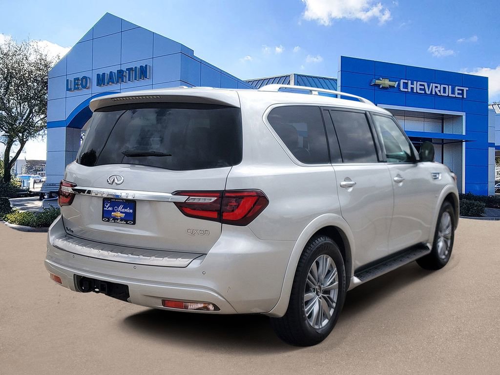 4-Wheel Disc Brakes, ABS brakes, Apple CarPlay/Android Auto, Auto High-beam Headlights, Auto tilt-away steering wheel, Auto-dimming Rear-View mirror, Automatic temperature control, Blind Spot Intervention (BSI), Blind Spot Warning, Brake assist, CD player, Delay-off headlights, Driver door bin, Dual front impact airbags, Dual front side impact airbags, Electronic Stability Control, Front dual zone A/C, Front fog lights, Fully automatic headlights, Garage door transmitter: HomeLink, Heated door mirrors, Heated Front Bucket Seats, Heated steering wheel, Intelligent Cruise Control, Lane Departure Prevention (LDP), Leather Shift Knob, Leather steering wheel, Leather-Appointed Seats, Navigation system: INFINITI InTouch Navigation, Occupant sensing airbag, Outside temperature display, Overhead airbag, Overhead console, Panic alarm, Power door mirrors, Power driver seat, Power Liftgate, Power moonroof, Power steering, Power windows, ProASSIST Package, Radio: AM/FM/HD w/Single In-Dash CD Player & MP3, Rain sensing wipers, Rear air conditioning, Rear window defroster, Rear window wiper, Reclining 3rd row seat, Remote keyless entry, Security system, Smart Rear View Mirror, Speed control, Split folding rear seat, Steering wheel memory, Steering wheel mounted audio controls, Tachometer, Telescoping steering wheel, Tilt steering wheel, Traction control, Turn signal indicator mirrors, Variably intermittent wipers, Wheels: 20 x 8.0 Aluminum-Alloy.